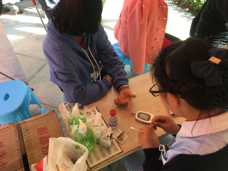为正在全神贯注给患者测量血糖的小护士点赞