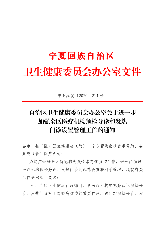 自治区卫生健康委员会办公室关于进一步加强全区医疗机构预检分诊和发热门诊设置管理工作的通知