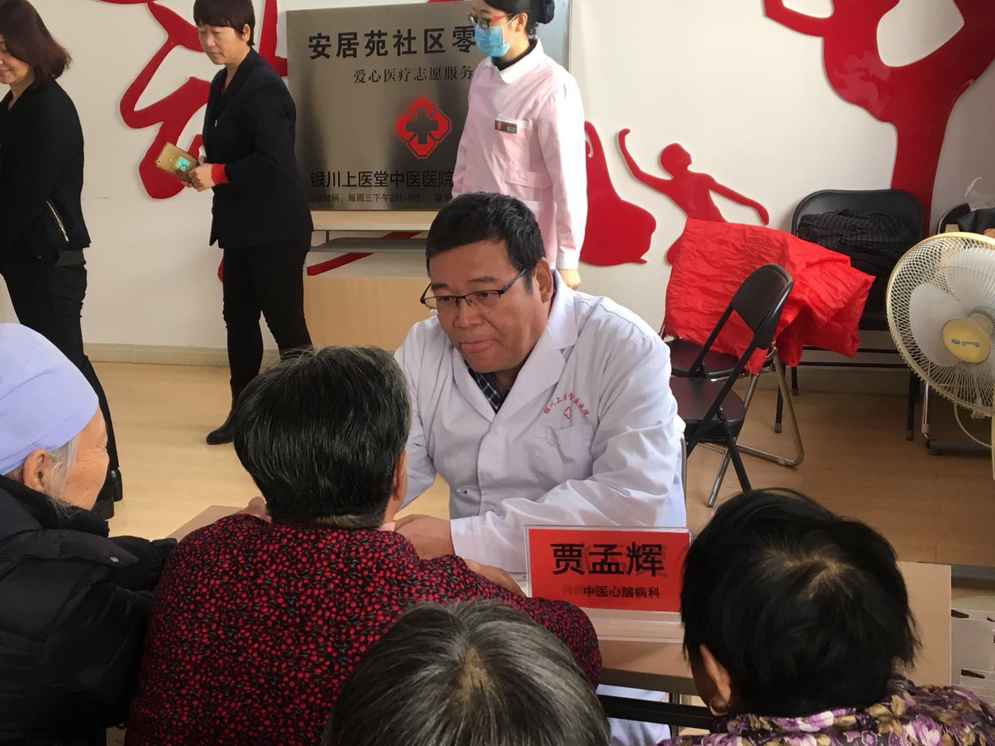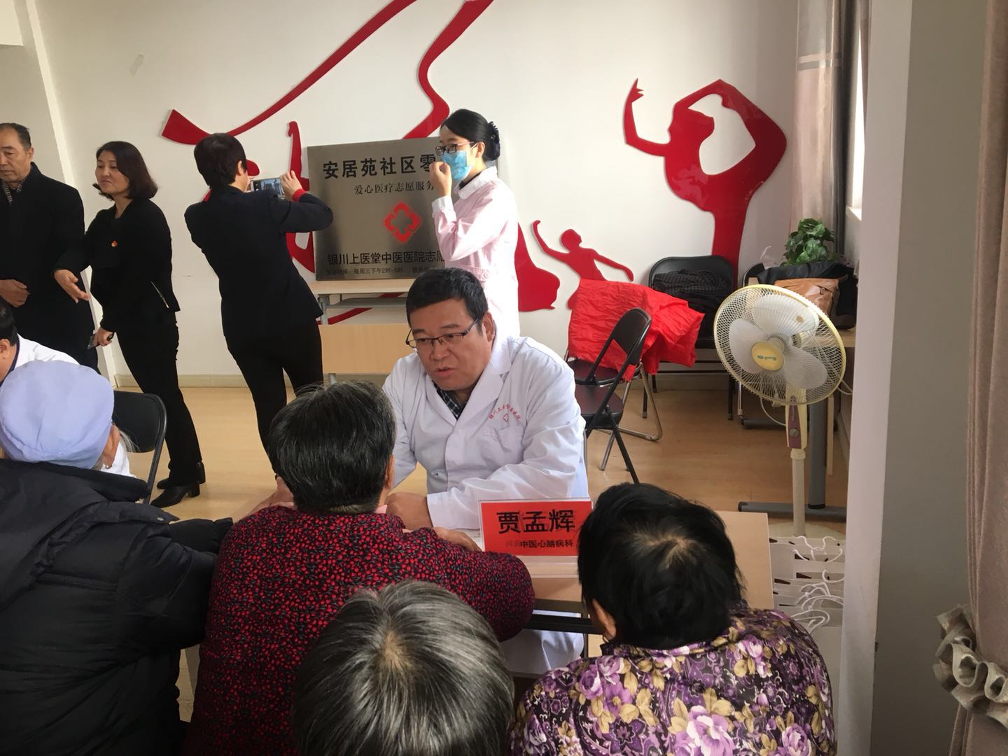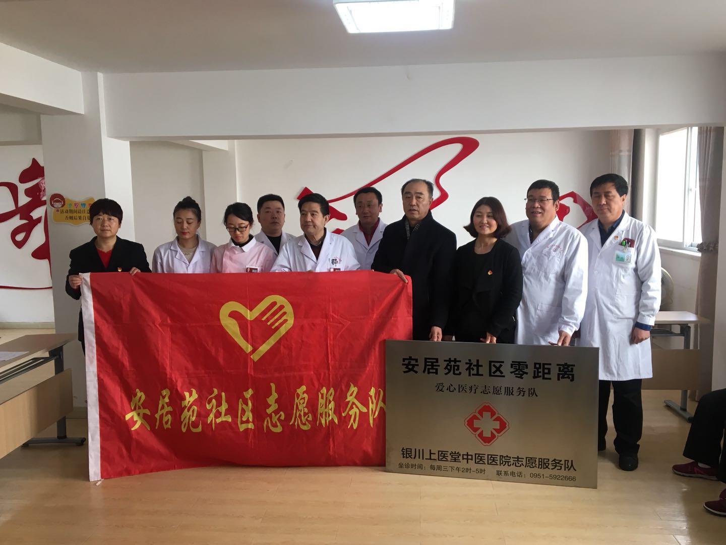 2018年12月5日下午14时,银川上医堂中医医院筹办“进社区、送健康”大型义诊活动暨“银川上医堂中医医院安居苑社区志愿者服务队”揭牌仪式,在银川市金凤区安居苑社区居委会拉开帷幕!银川上医堂中医医院院长武奎、银川市第一人民医院中医科主任贾孟辉、银川市第一人民医院马宣主任、银川上医堂中医医院内科主任张进学、中医科辛涛、上医堂中医医院针推科赵志峰和护士李向明,臧亚青等安居苑社区相关领导出席了揭牌仪式。