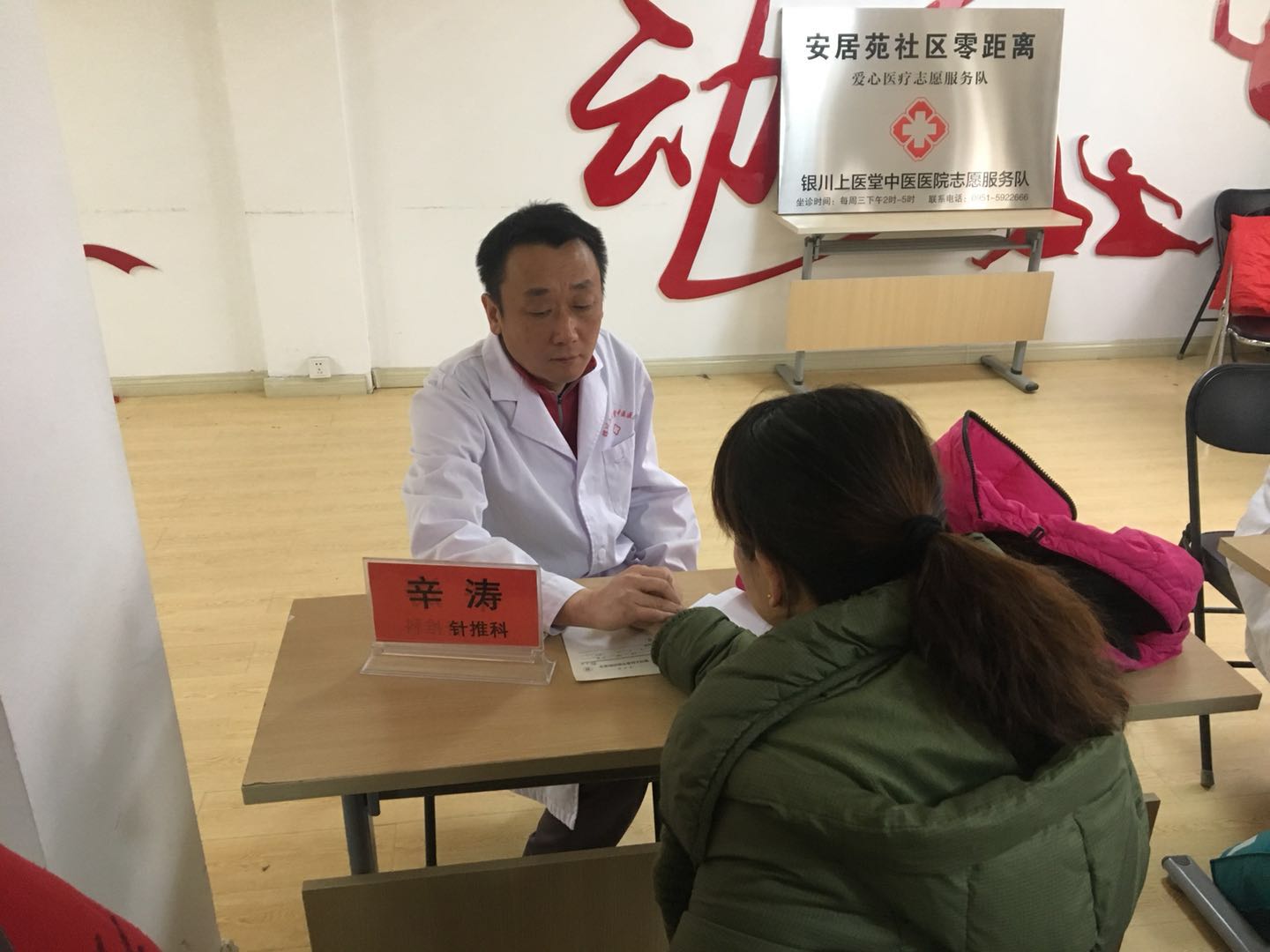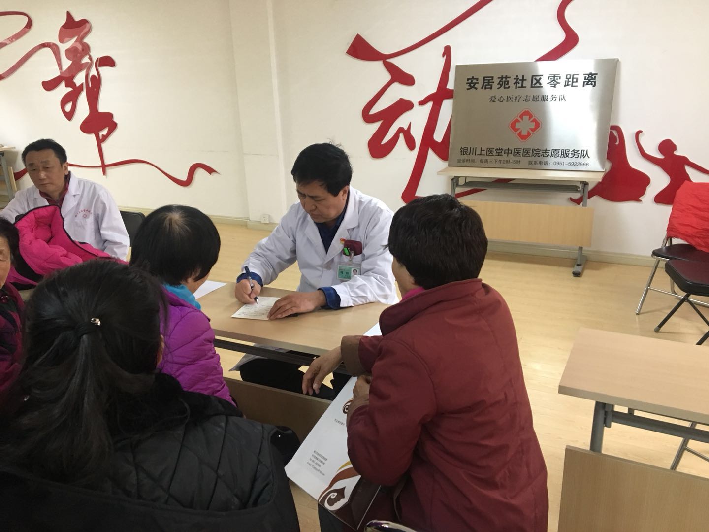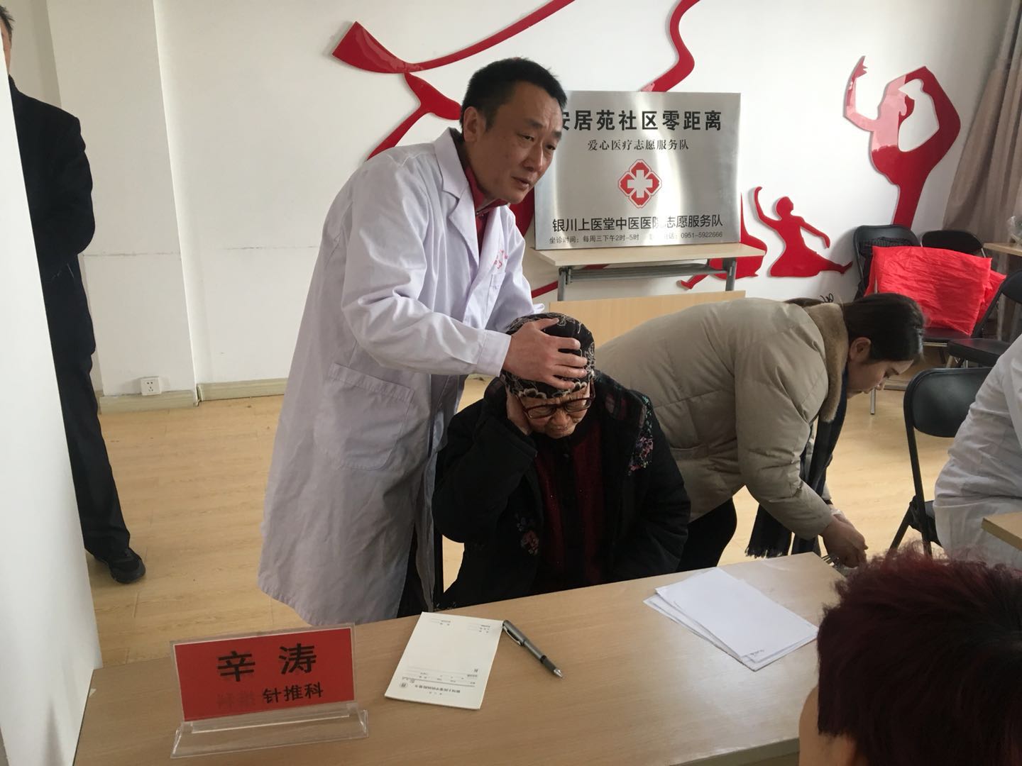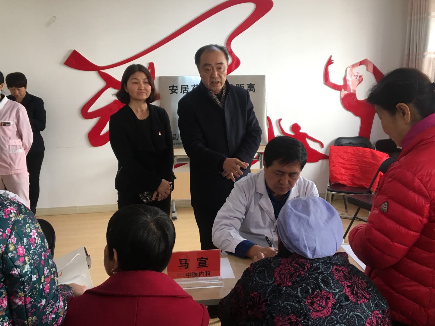 2018年12月5日下午14时,银川上医堂中医医院筹办“进社区、送健康”大型义诊活动暨“银川上医堂中医医院安居苑社区志愿者服务队”揭牌仪式,在银川市金凤区安居苑社区居委会拉开帷幕!银川上医堂中医医院院长武奎、银川市第一人民医院中医科主任贾孟辉、银川市第一人民医院马宣主任、银川上医堂中医医院内科主任张进学、中医科辛涛、上医堂中医医院针推科赵志峰和护士李向明,臧亚青等安居苑社区相关领导出席了揭牌仪式。