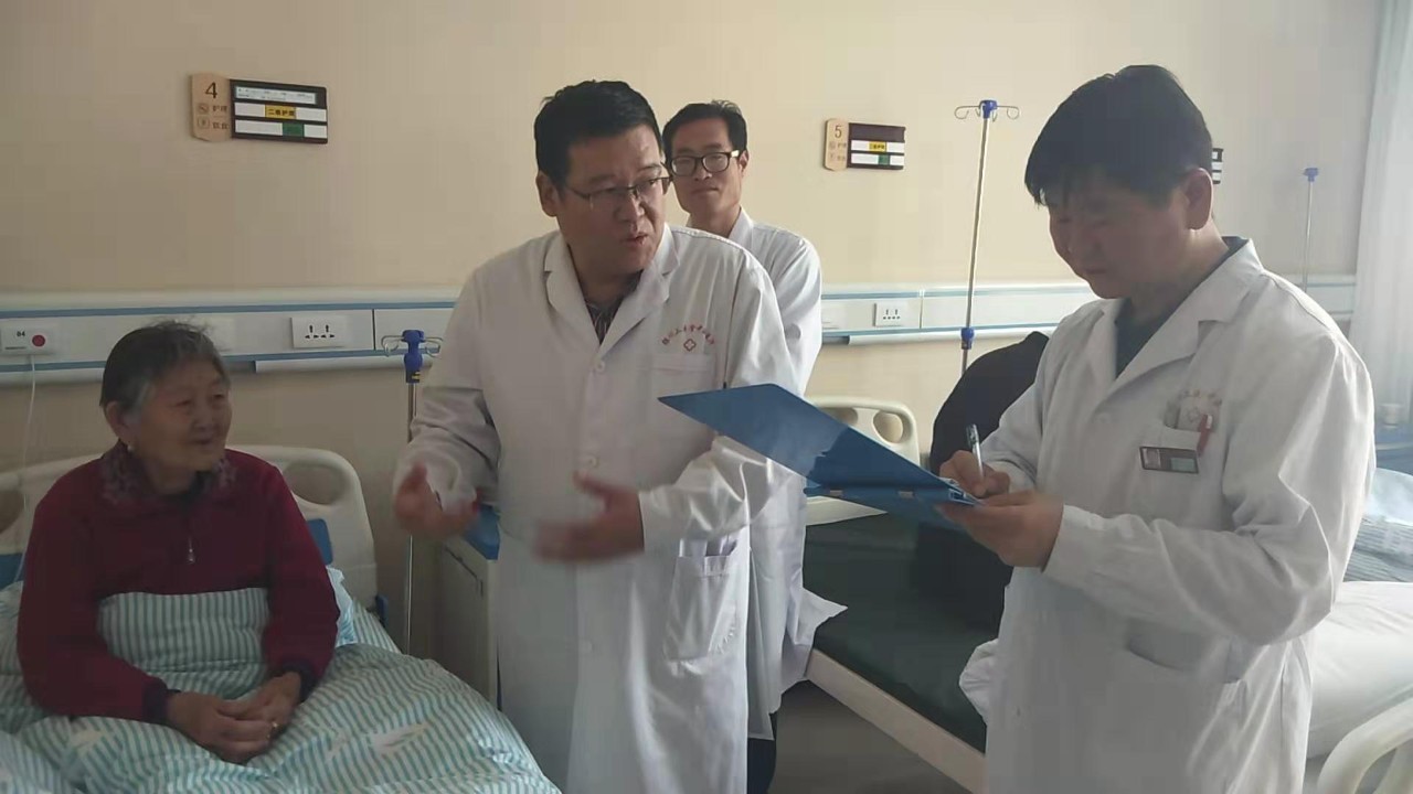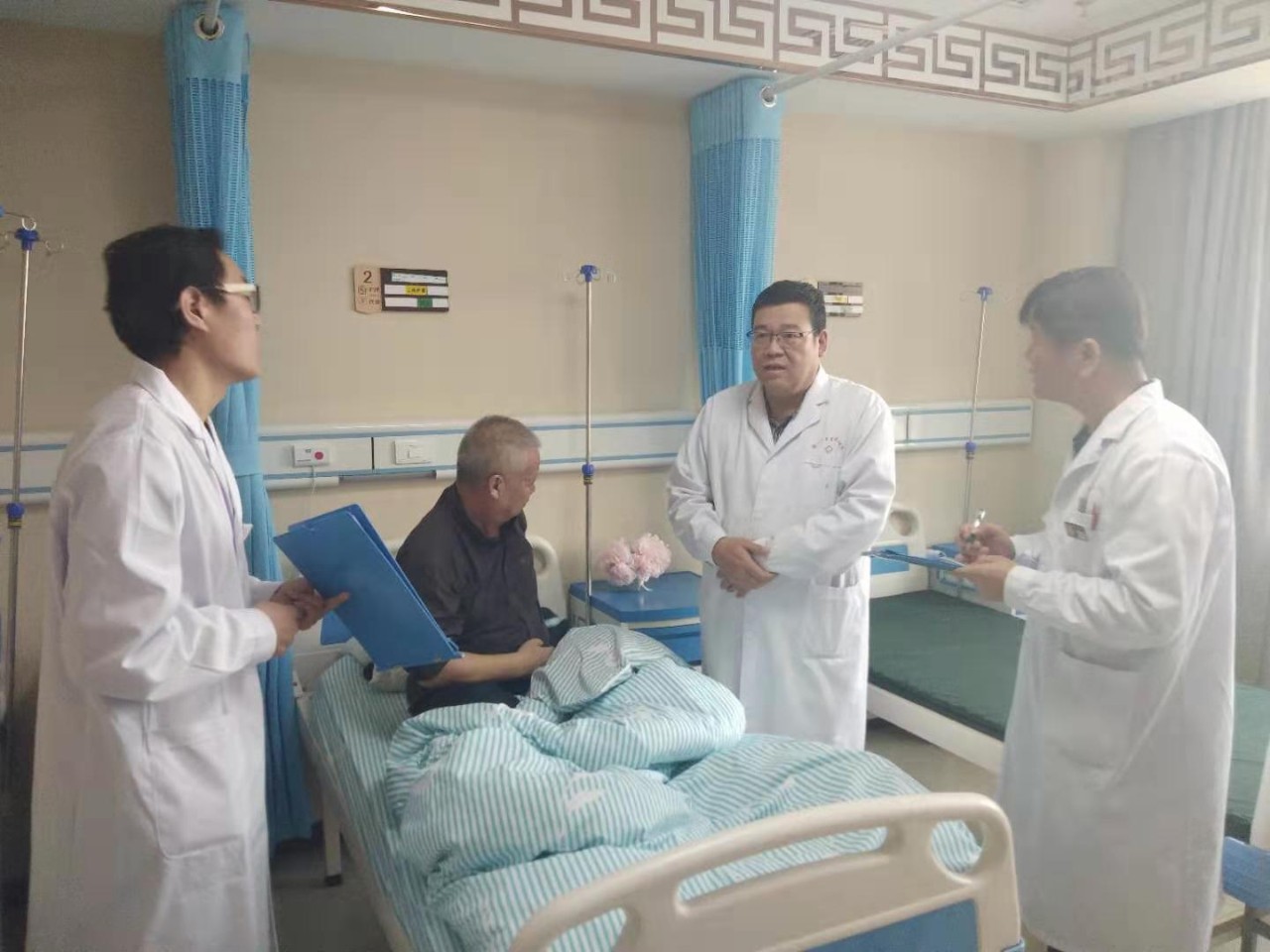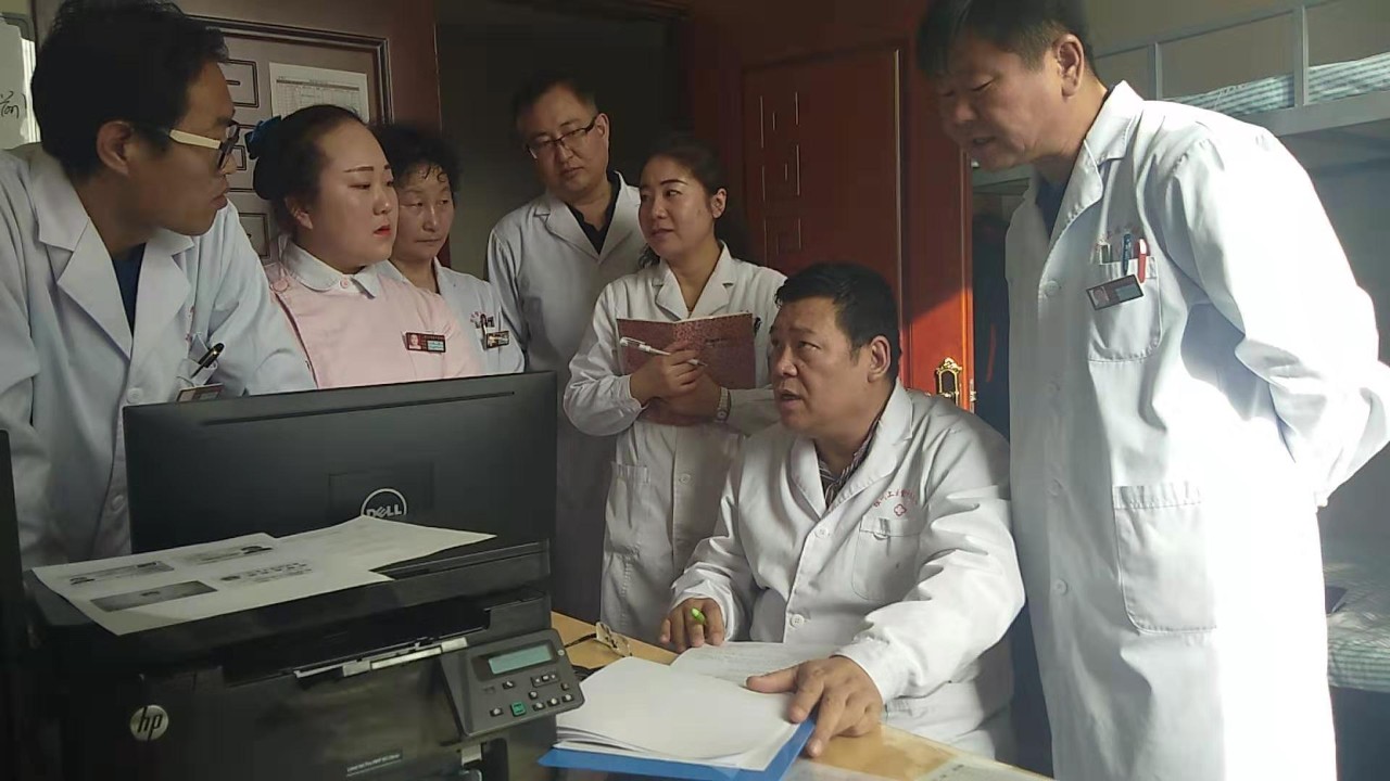 2019年3月19日上午9时,市医联体单位———银川市第一人民医院中医科主任、首届凤城名医贾孟辉主任医师应我院之邀临床指导教学查房,贾主任在我院张进学副院长、施晓峰主任王莉主任陪同下,带领我院医护团队对所有住院患者教学大查房。查房过程中,贾主任认真聆听了住院医师对每个患者的病情介绍、诊疗经过和目前存在的问题,询问了患者的诊疗体验,仔细检查体征,详细询问患者症状,还不时地和主管医师进行辨证交流和分析,并对诊疗方案提出了自己的意见和建议。查房结束,又来到住院部医办室,翻阅了患者的住院病历,就病历中的规范书写和注意节点等和主管医师进行了交流,肯定和赞扬了主管大夫能够及时完成病历书写,并给大家谈及了书写住院病历过程中普遍存在的问题和书写要求等。在场的青年医师们聚精会神地聆听了贾主任的讲解和分析,并和贾主任进行互动,学习交流气氛十分浓郁,纷纷表示今后应多组织和进行这样的教学查房活动,受益很大。
