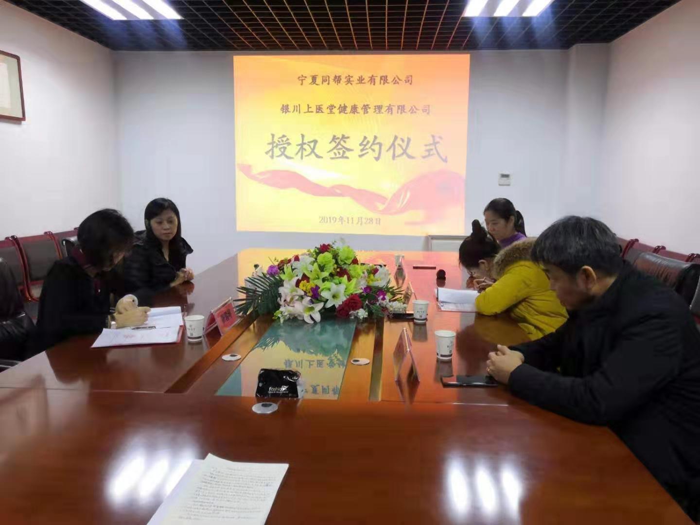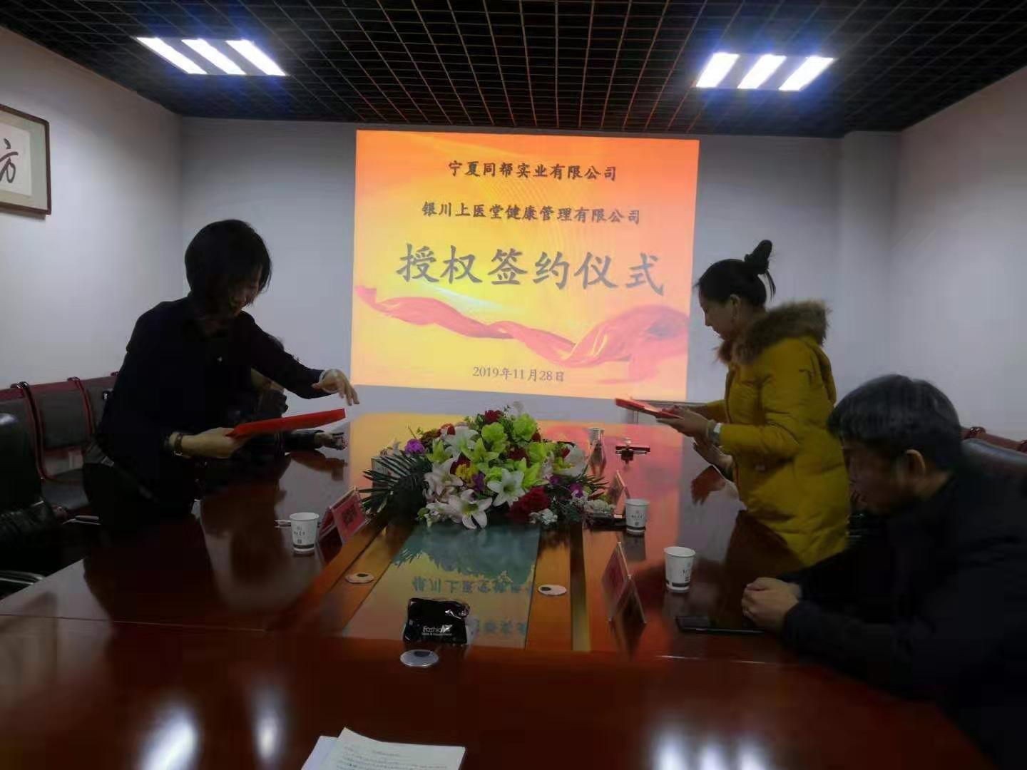 本着携手并进、合作共赢的经营理念,宁夏同帮实业有限公司与银川上医堂健康管理有限公司授权签约仪式于2019年11月28日上午9点18分在银川上医堂健康管理有限公司会议室准时举行。