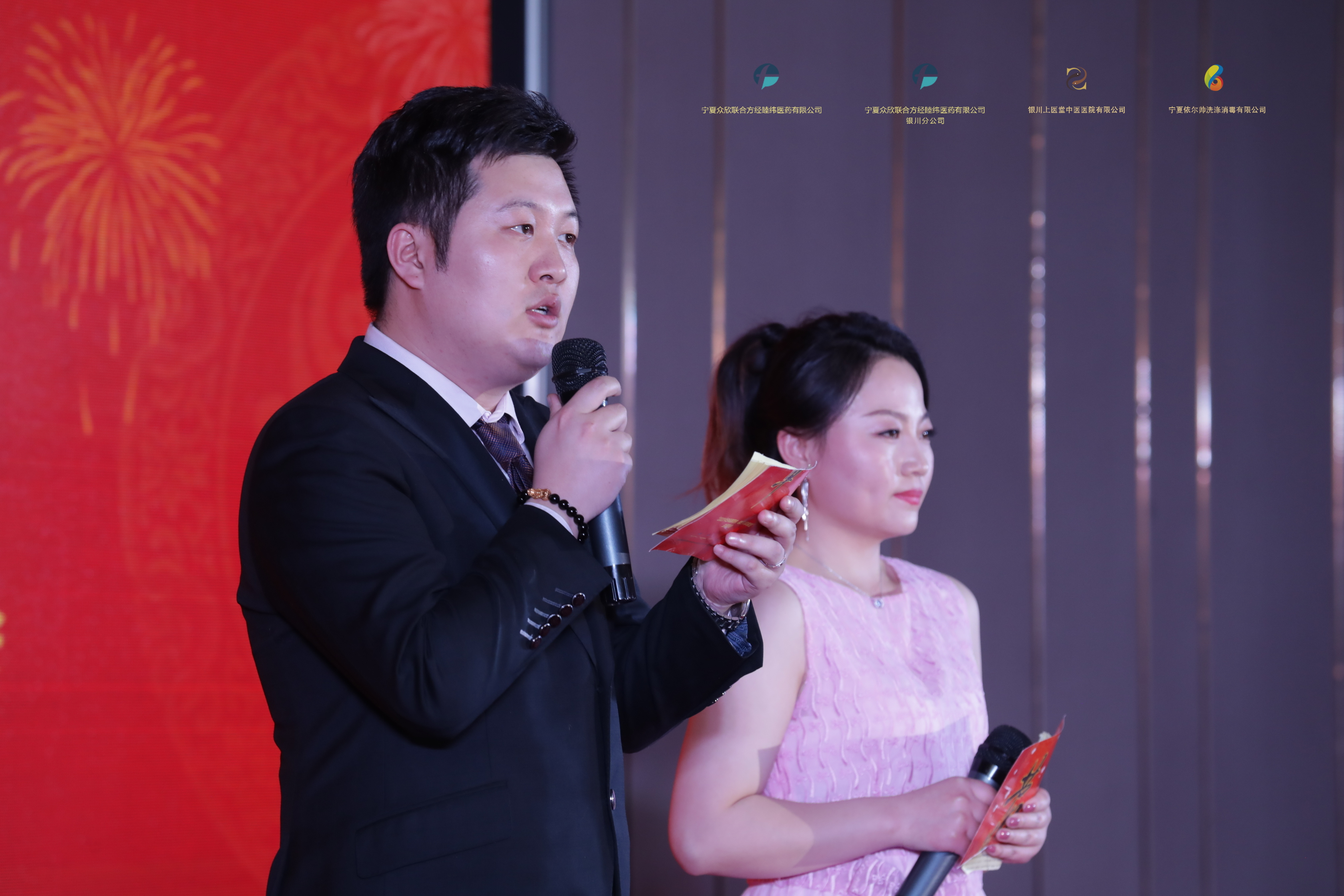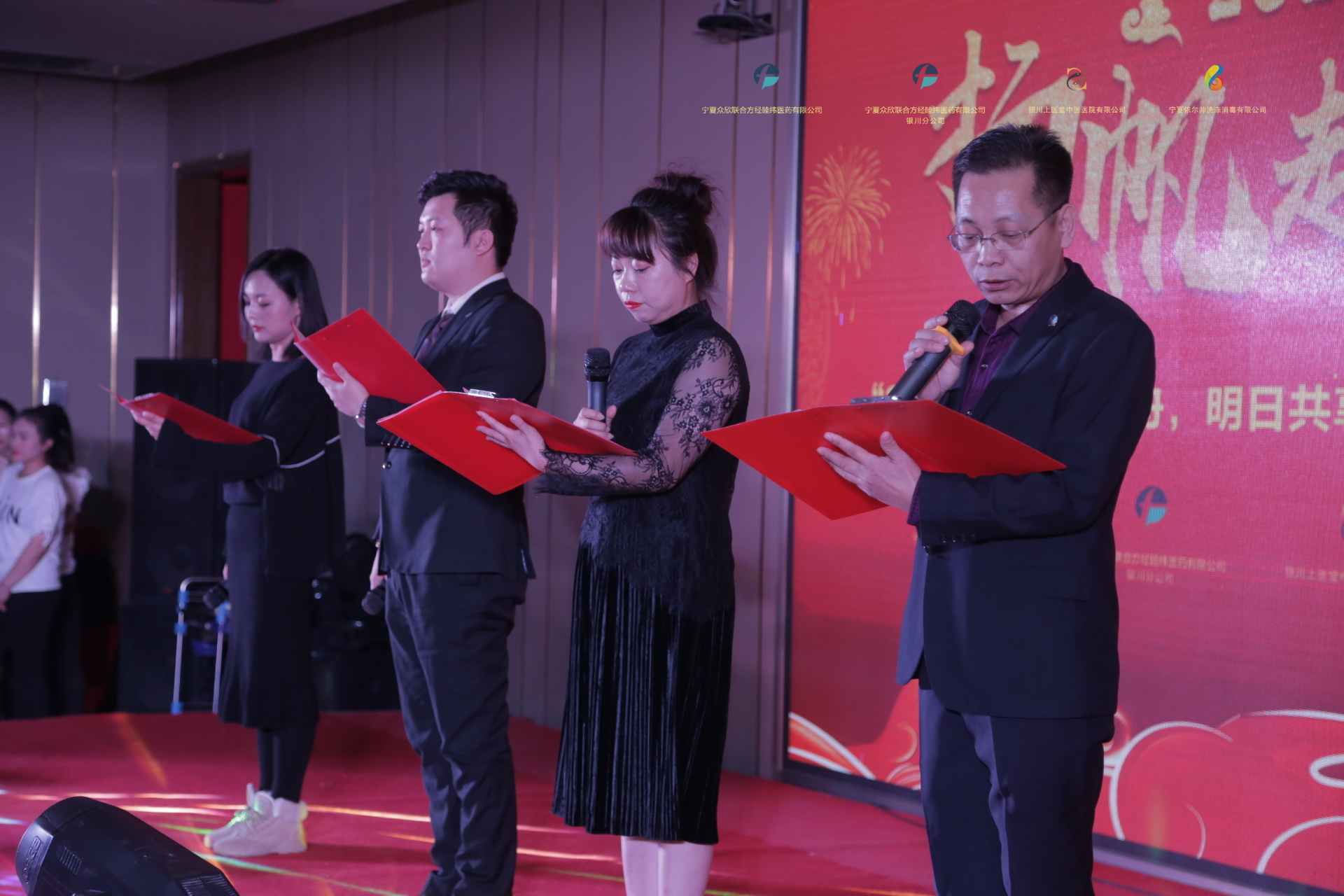 新年伊始,万象更新,2019年12月29日,银川上医堂中医医院联合关联公司宁夏众欣联合方经睦纬医药有限公司、宁夏众欣联合方经睦纬医药有限公司银川分公司、宁夏依尔帅洗涤消毒有限公司共同举办了“2020今日风雨同舟,明日共享辉煌”的主题晚会,在经历了前期充分的准备后,晚会于当日下午15:00在我市兴庆区金宇伊豪酒店四楼宴会厅准时举行,出席此次年会的人员除了各公司的领导、医院各位专家、全体员工以外,公司还邀请到了国药控股宁夏公司、宁夏中邮集团的一系领导,同时还邀请了合作厂家广东金城金素制药有限公司的相关领导及年度优秀员工的家属一并莅临我司年会,一起度过了美好而有意义的一天。