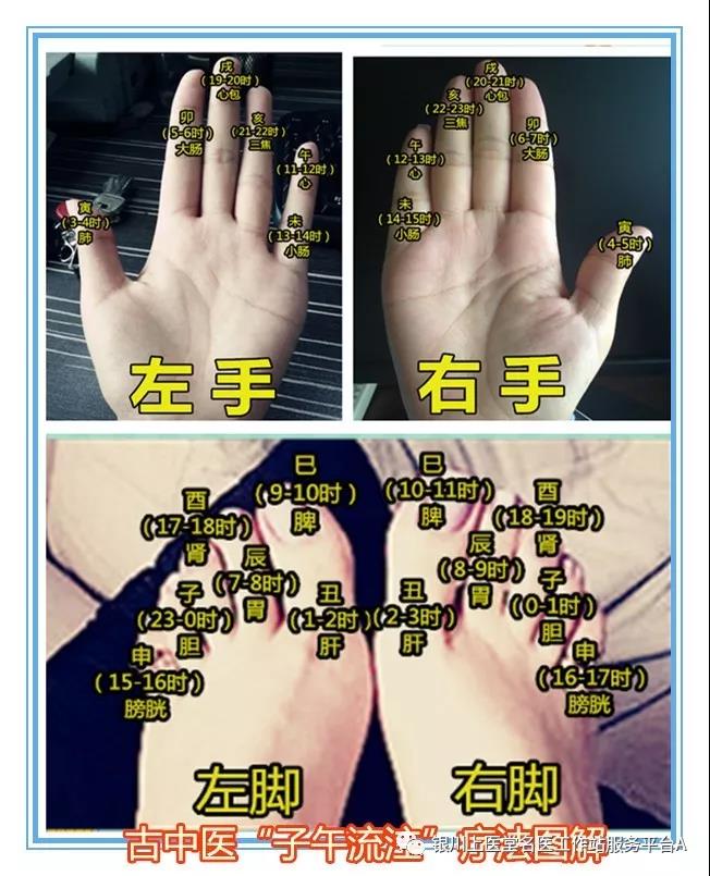 寅时气血注入肺, 卯时大肠辰时胃, 巳脾午心未小肠, 申属膀胱酉肾位, 戌时心包亥三焦, 子胆丑肝各定位。